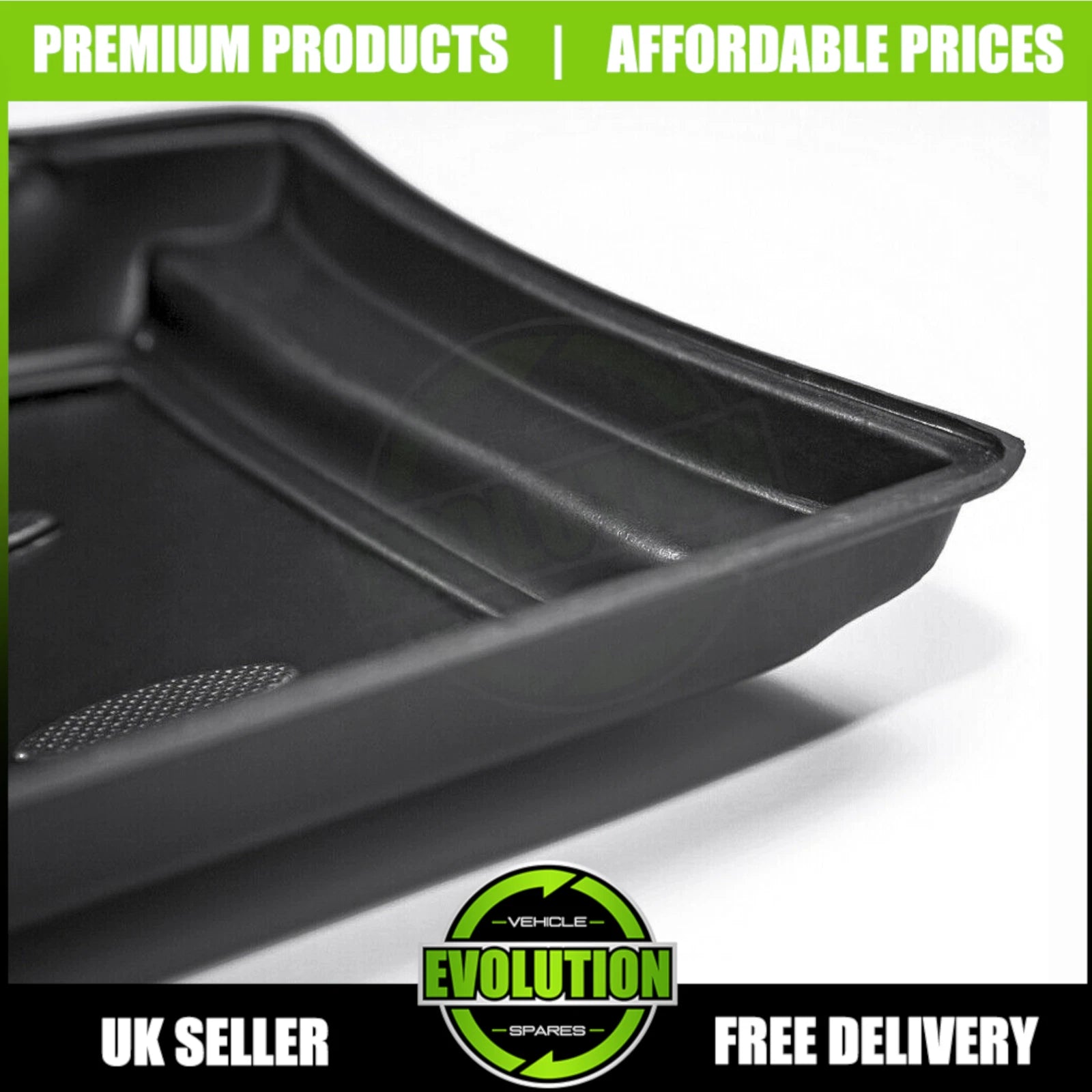 Hard-wearing rubber deep tray design.