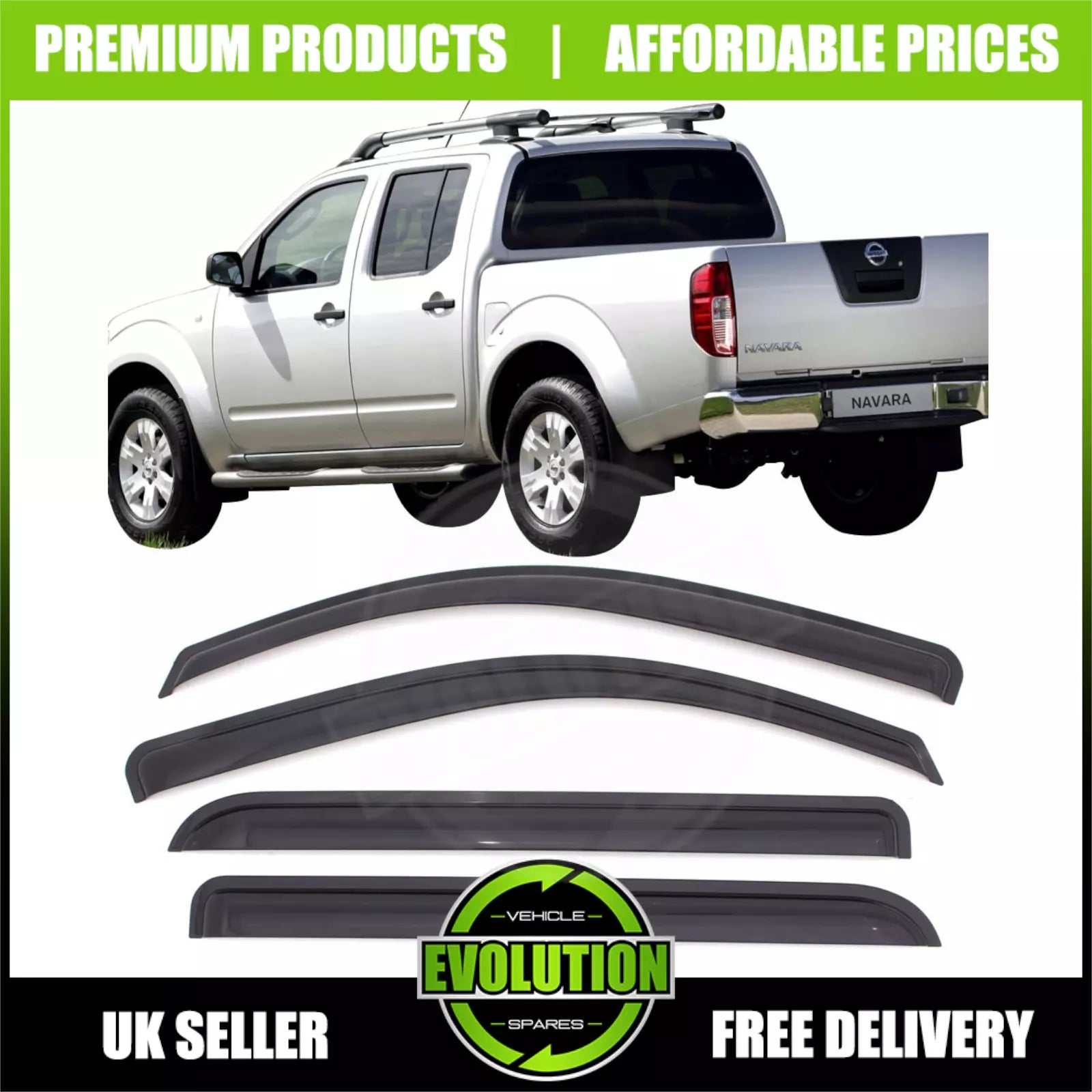 WIND RAIN SMOKE DEFLECTORS VISORS FITS Nissan NAVARA D40 2006-2015 EXTERNAL FIT